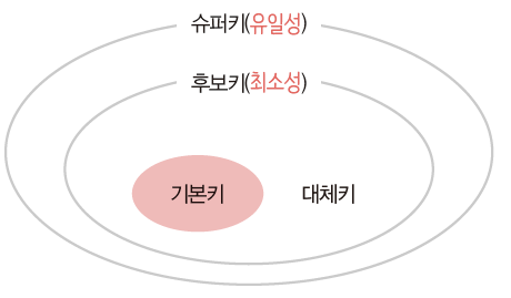 - 슈퍼키(Super Key): 유일성을 만족하는 키의 집합.