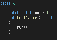 mutable로 선언된 변수는 const 함수에서 값을 바꿀 수 있다.