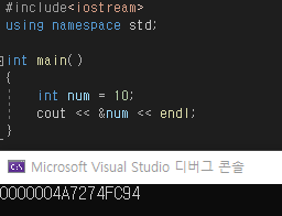 주소 연산자(&)는 변수의 이름 앞에 사용되며 해당 변수의 주소값을 반환한다.