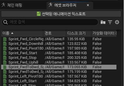 원하는 애니메이션을 누르고 익스포트하여 애니메이션을 저장할 수 있다.